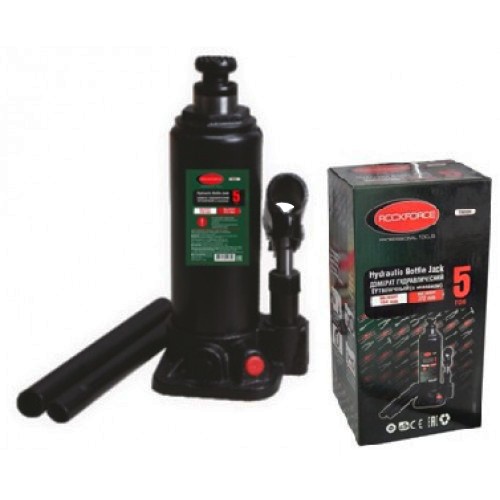 Домкрат бутылочный с клапаном 5 тонн + дополнительный ремкомплект Rock FORCE T90504